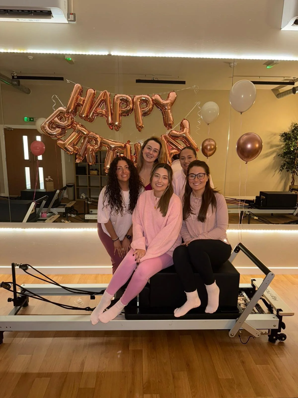 A private Reformer session for your group with your own playlist and a group photo.
